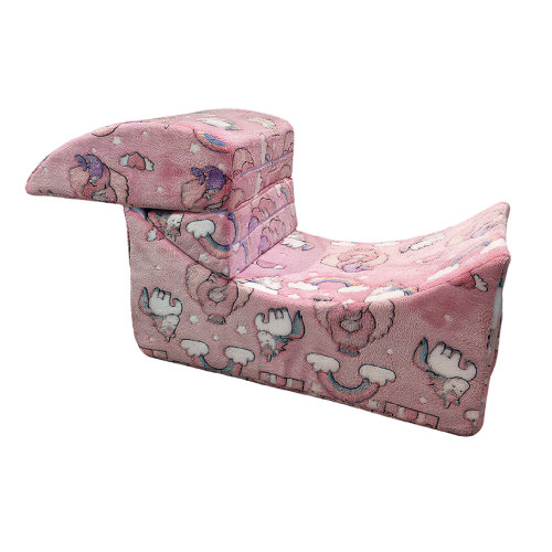 Adornato con modelli affascinanti come unicorni, arcobaleni, nuvole e stelle, questa sedia da salotto infantile aggiunge un tocco di magia a qualsiasi stanza. Il suo aspetto giocoso si adatta perfettamente a vivai, sala giochi o spazi abitativi.
