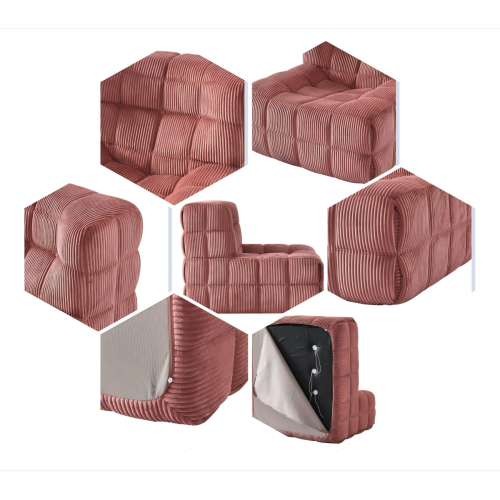 Scopri il perfetto connubio tra estetica moderna e comfort eccezionale con il nostro divano angolare multiuso . Progettato per versatilità e stile, questo divano è realizzato in pregiato tessuto di velluto a coste di puro cotone in una morbida tonalità rosa, che offre un tocco morbido e delicato sulla pelle. Il suo design minimalista ma funzionale lo rende un complemento ideale per qualsiasi spazio abitativo, offrendo eleganza e praticità.