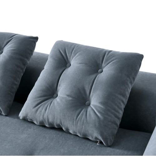 Sperimenta l'eleganza morbida al tatto con il nostro rivestimento in ciniglia di alta qualità. La finitura grigia resistente allo sbiadimento si abbina a qualsiasi arredamento, mentre i bottoni trapuntati aggiungono dettagli sofisticati alle fodere per cuscino abbinate.