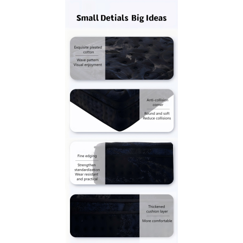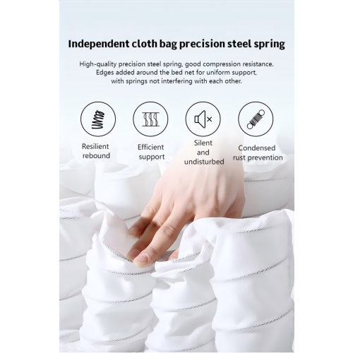 Materasso a molle insacchettate indipendenti a tre zone : il nostro sistema di supporto centrale è dotato di un'unità a molle insacchettate indipendenti a tre zone. Ogni molla è realizzata in acciaio ad alta resistenza, intascata individualmente per ridurre al minimo il trasferimento del movimento e fornire un supporto localizzato che si allinea con le curve naturali del corpo, promuovendo il corretto allineamento della colonna vertebrale.