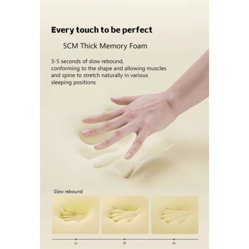 Memory foam spaziale con sollievo dalla pressione profonda di 5 cm: si adatta alla forma del tuo corpo con un lento rimbalzo di 3-5 secondi, riducendo significativamente i punti di pressione e consentendo ai muscoli di rilassarsi completamente in qualsiasi posizione di sonno.