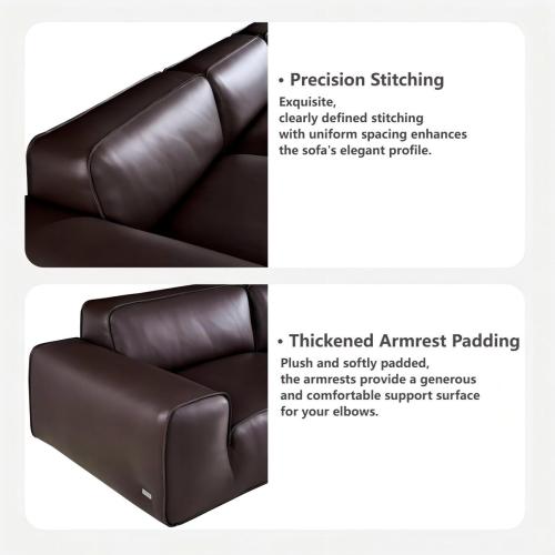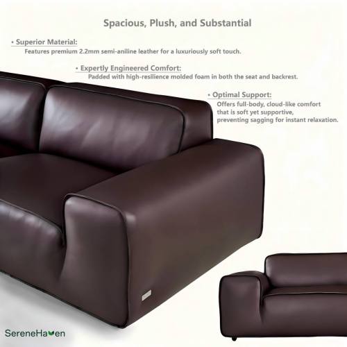 Migliora gli spazi commerciali e residenziali con il divano in pelle marrone scuro SereneHaven Dacale. Progettato per i clienti B2B che richiedono una miscela perfetta di stile duraturo, comfort superiore e durata senza compromessi, questo moderno divano in pelle è un pezzo distintivo per hotel di lusso, lounge executive e zone giorno raffinate.