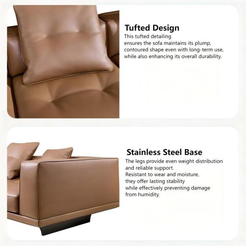 Materiali e lavorazione di alta qualità: rivestito in pelle semi-anilina da 2,2 mm per una finitura morbida e resistente. Presenta classici dettagli trapuntati e una base in acciaio inossidabile per uno stile e una stabilità elevati.