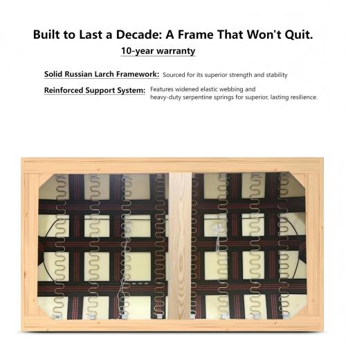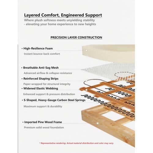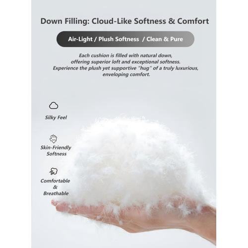 Stratificazione dal comfort avanzato : ogni cuscino è imbottito con piuma naturale e supportato da schiuma 60D ad alta resilienza , che offre morbidezza simile a una nuvola senza cedimenti. La struttura a strati di precisione comprende cinghie elastiche allargate e molle a forma di S di grosso spessore per un supporto duraturo.
