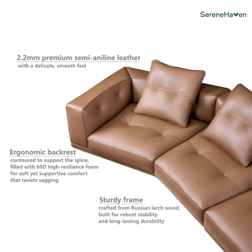 Migliora gli spazi commerciali e di ospitalità con il divano in pelle Dylan di SereneHaven. Progettato per chi cerca mobili di alta qualità che combinino uno stile sofisticato con una resistenza a lungo termine, questo divano è progettato per soddisfare le esigenze di ambienti ad alto traffico come hotel di lusso, lounge executive e complessi residenziali di lusso.