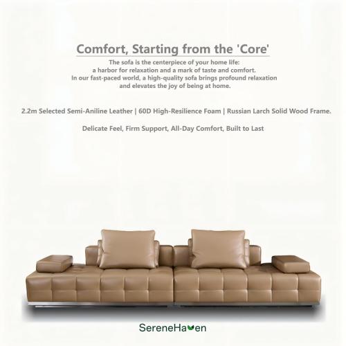 Migliora le tue offerte commerciali con il divano in pelle Lawrence di SereneHaven. Questo divano minimalista italiano incarna un'eleganza senza tempo e una struttura robusta, progettato per gli acquirenti B2B che cercano mobili da soggiorno moderni e di alta qualità.