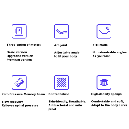 La funzione di massaggio con vibrazione integrata (disponibile in configurazioni premium) calma la tensione muscolare e promuove il rilassamento. Abbinato alla memory foam a pressione zero, distribuisce uniformemente la pressione del corpo, fornendo morbidezza simile a una nuvola e supporto della colonna vertebrale.