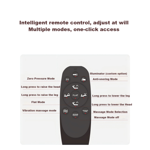 Dotato di un telecomando wireless, questo comodo materasso intelligente consente regolazioni a più gravi angoli per la lettura, la pressione zero, il tempo libero e le modalità anti-snore. Goditi il comfort personalizzato con impostazioni personalizzate 7+N per supportare perfettamente le curve del tuo corpo.